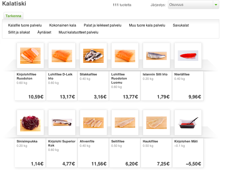 Prisma.fi:n kalatiskistä löytyi ylivoimaiset 111 tuotetta, mutta ne toimitetaan kotiin vain Helsingin Kannelmäen seudulla asuville.