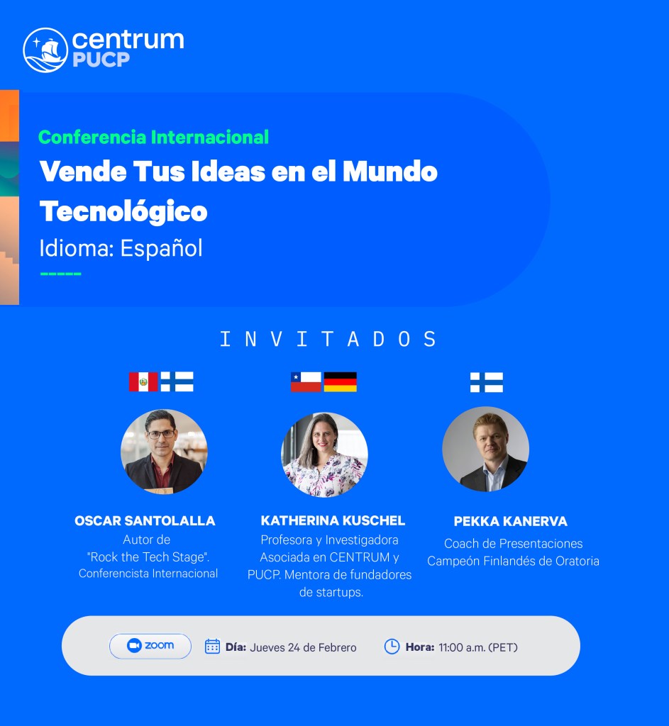 The event is organized by Centrum PUCP, one of the best business schools in all of Latin America. They created the below banner about the webinar and us speakers.