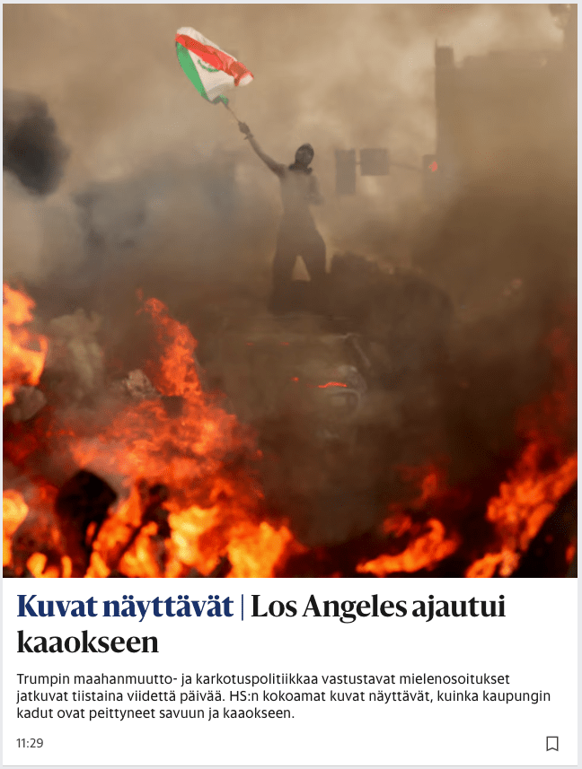 Suomalaisen median uutisointi Los Angelesin mielenosoituksista näyttää tukevan Yhdysvaltain hallinnon valheellista versiota tapahtumista. Tämä ei ole ihan pieni asia journalismin mallimaassa.